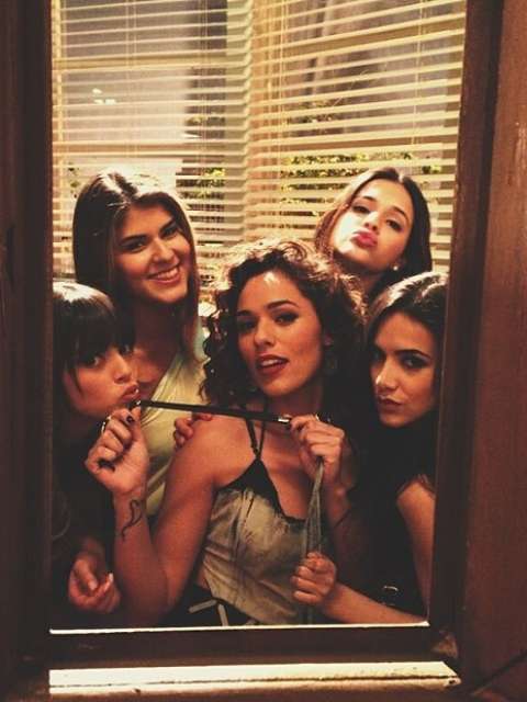 Bruna Marquezine passou parte da noite de sábado (31) gravando a novela Em Família, no Rio de Janeiro. A atriz, que vive a jovem Luiza na trama de Manoel Carlos, registrou o momento e dividiu com seus seguidores no Instagram. "Noite das garotas", escreveu na legenda da imagem, em que aparece no espelho com Manu Gavassi, Agatha Moreira, Luana Azevedo e Roberta Almeida. Erika Januza, a Alice de Em Família, também postou uma foto da gravação. "A gente se diverte!!", disse na legenda de uma imagem, em que as atrizes aparecem gargalhando no chão.